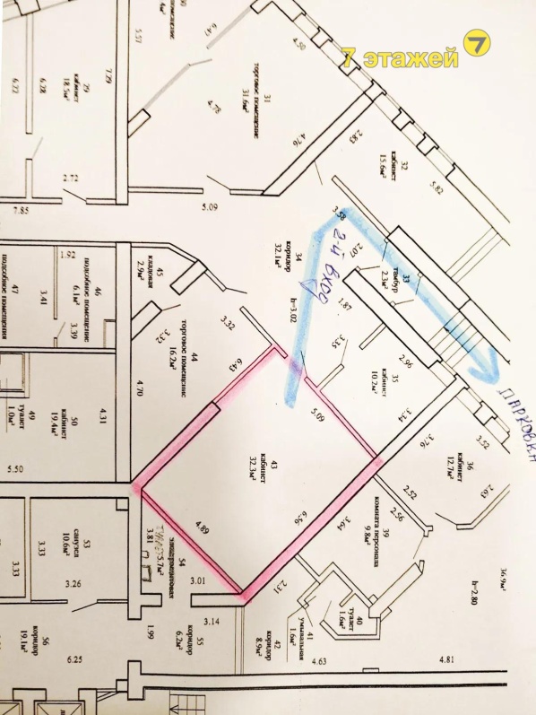 Помещение площадью 32,3 м2- 45 бел. руб. за м2 без НДС находится на первом этаже здания, без естественного освещения.