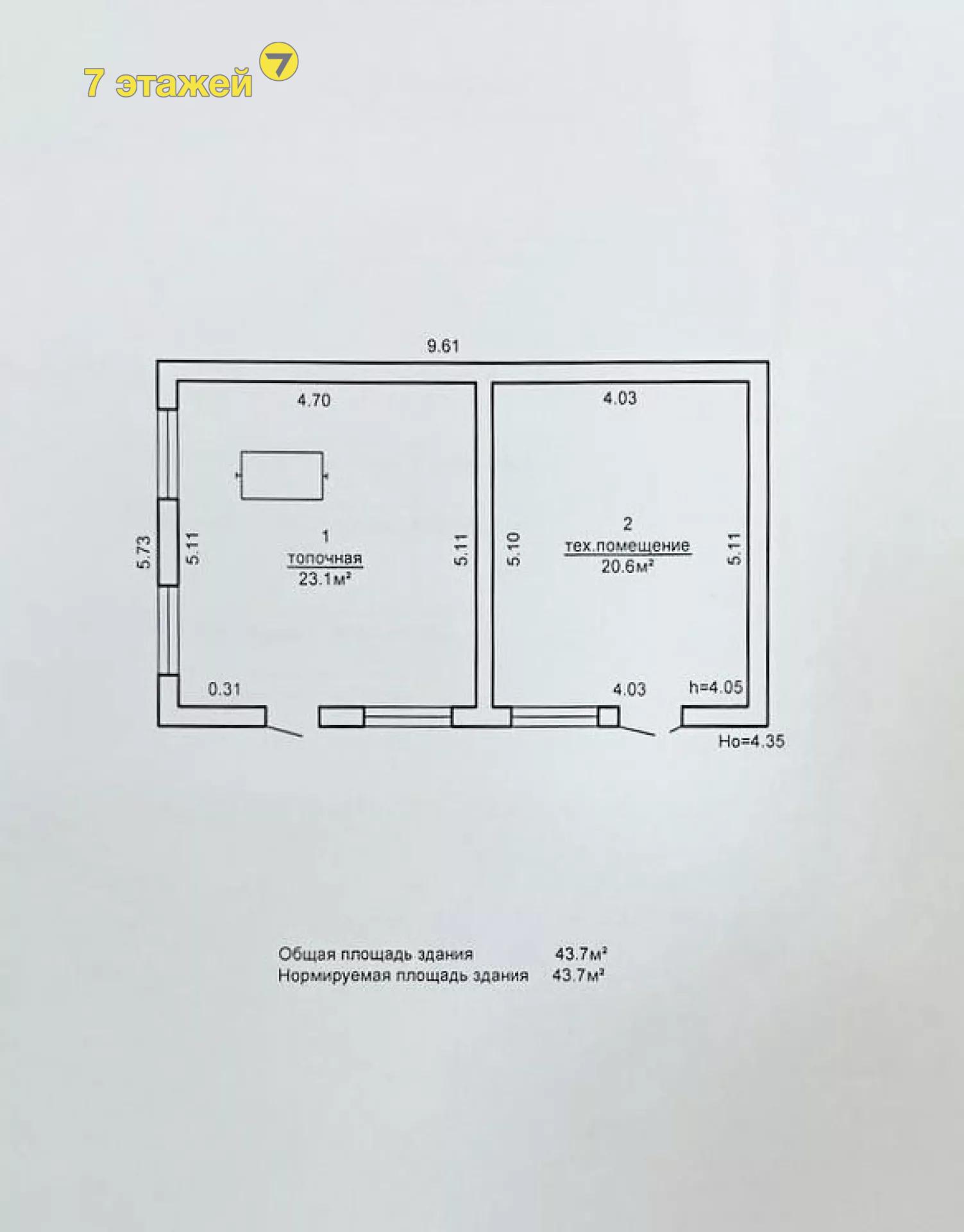 2) Здание котельной с техническим помещением общей площадью 43.7 м2.