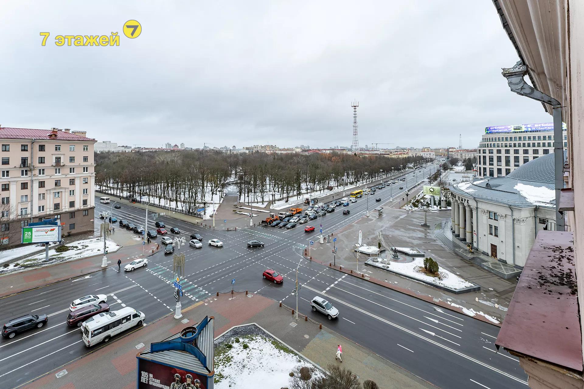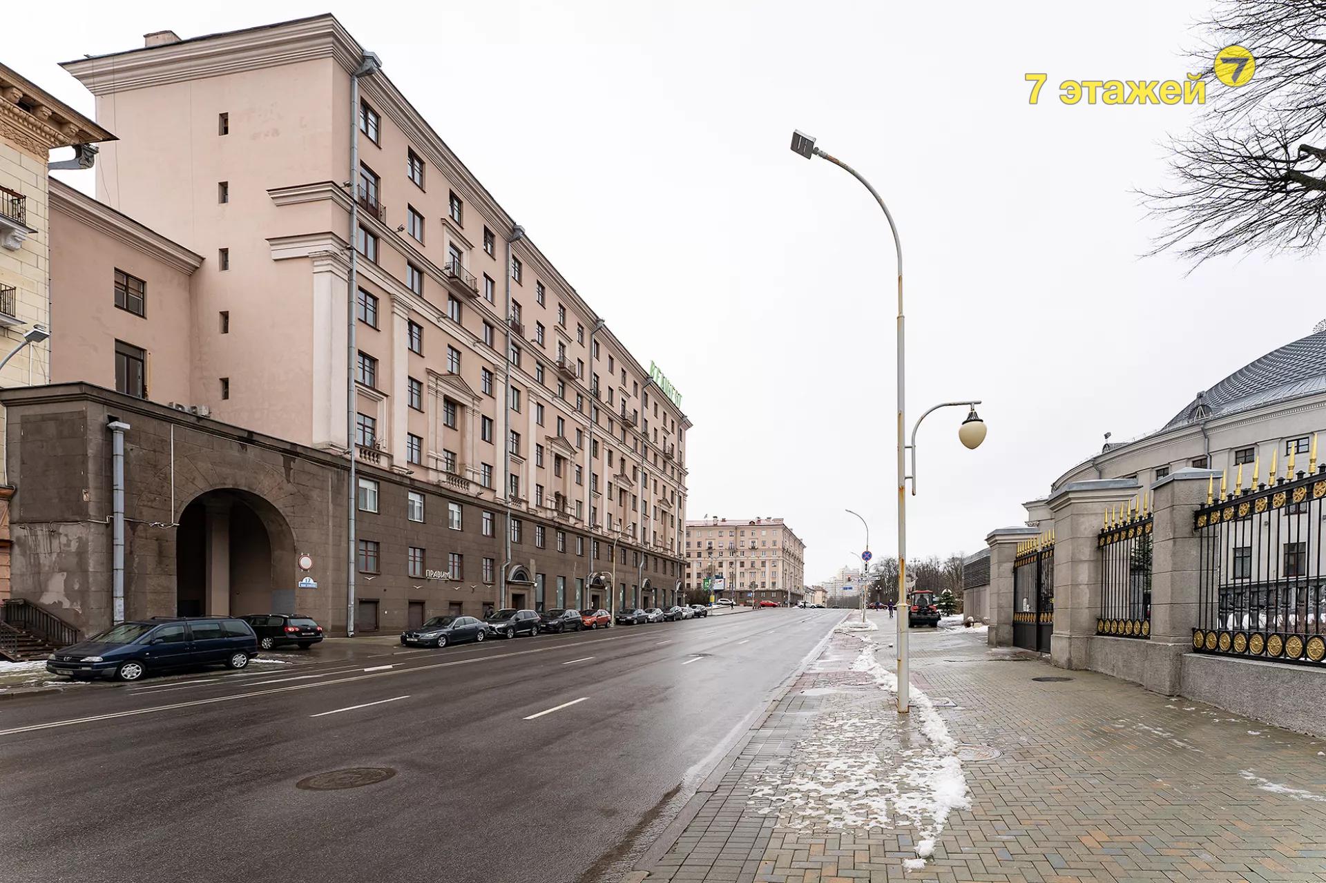 Расположена квартира в шикарном доме, построенном в 50-ые годы прошлого века, в стиле неоклассицизма (сталинский ампир), прямо напротив Государственного Цирка, в "Золотой миле" Минска. В доме монолитные железобетонные перекрытия, толстые кирпичные стены с высокой шумо-термоизоляцией. Архитектурная подсветка фасадов в вечернее время подчеркивает величие и монументальность стиля. Квартиры в таких домах редко появляются в продаже и вызывают интерес не только у ценителей истории, но и у тех, кто хотел бы вписать свою страницу в историю.