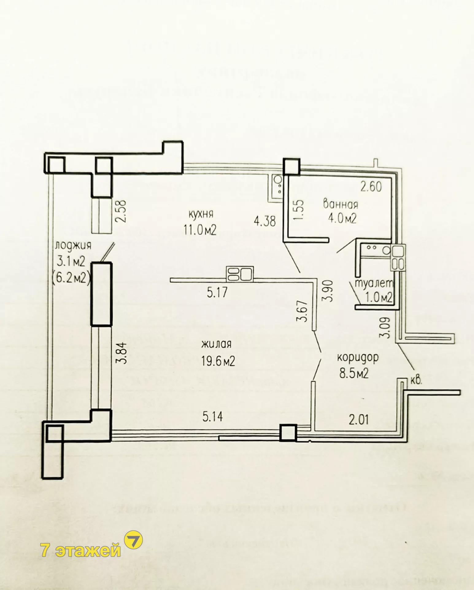 Площадь по СНБ - 47,2 м2, общая площадь - 44,1 м2, жилая - 19,6 м2, кухни - 11,0. Высота потолков - 2,71. Застекленная большая лоджия. Окна выходят на тихий закрытый оборудованный двор.