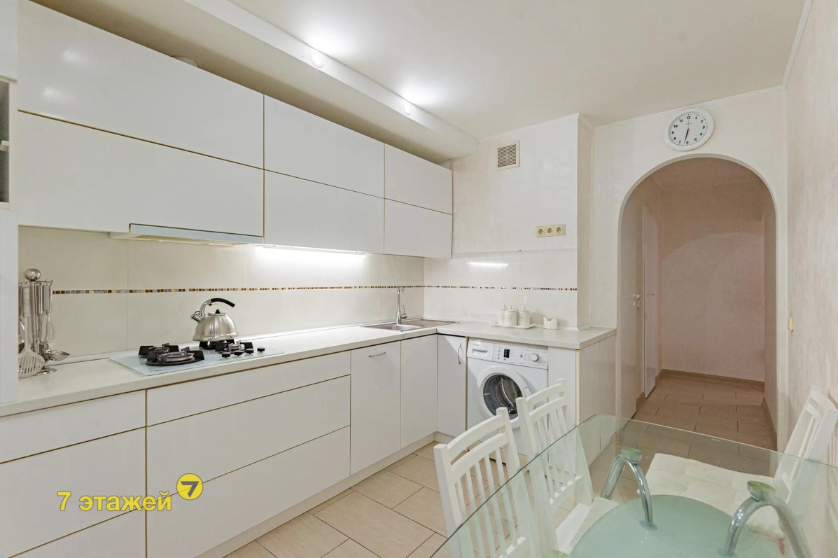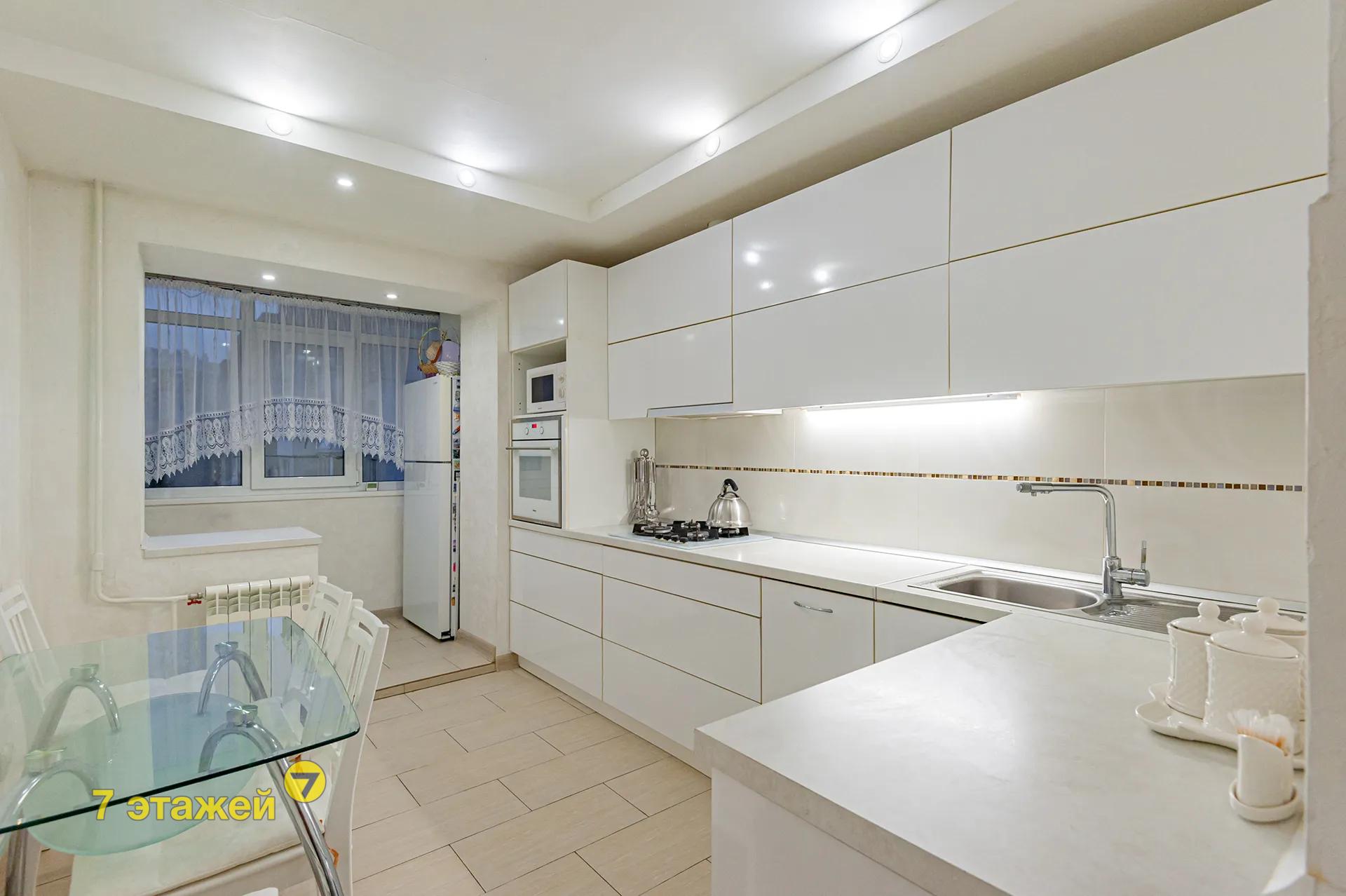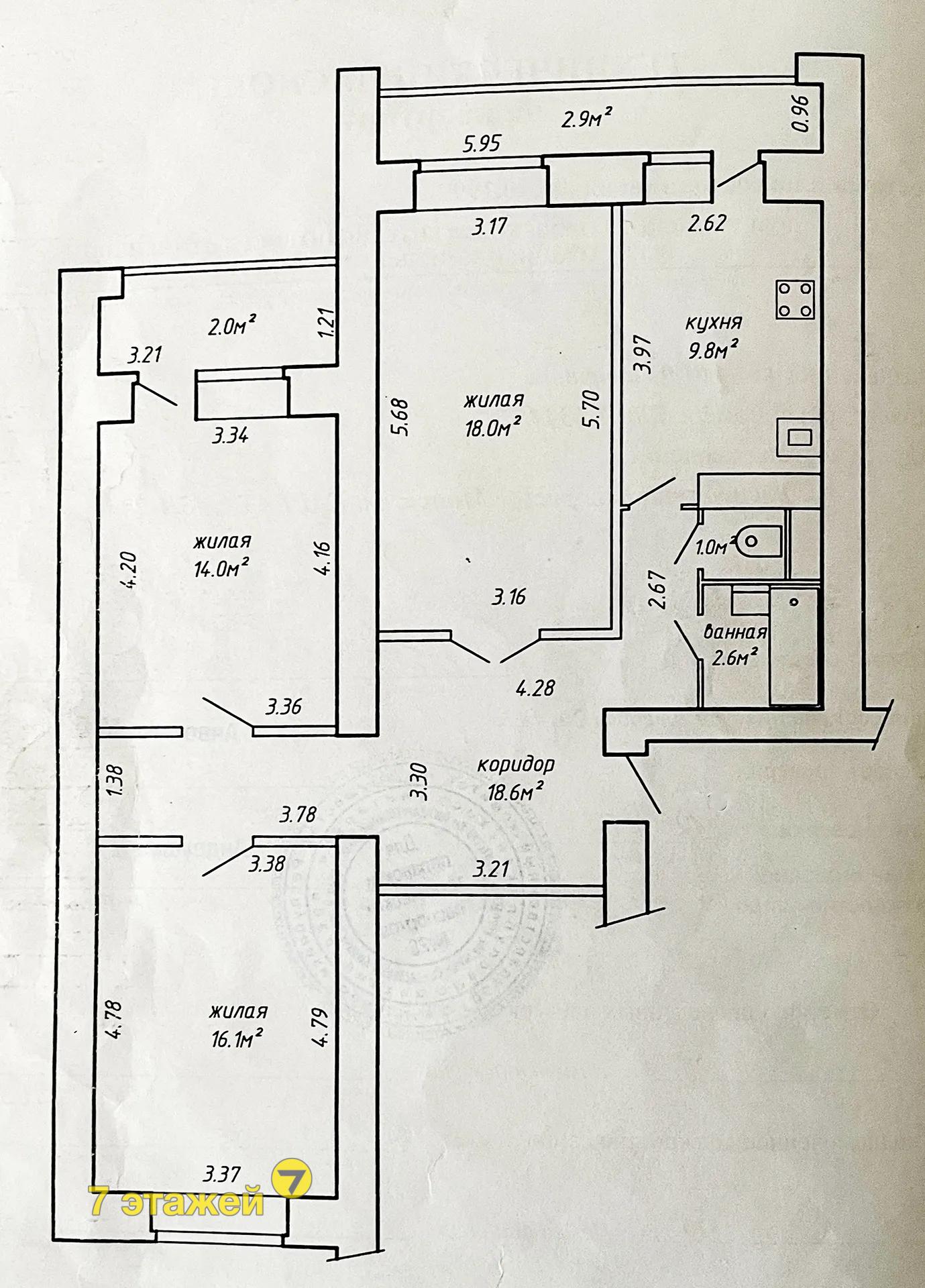 Общая площадь по СНБ 85 кв.м, общая - 80,1 кв.м, жилая – 48,1 кв.м, кухня - 9,8 кв.м с выходом на лоджию.