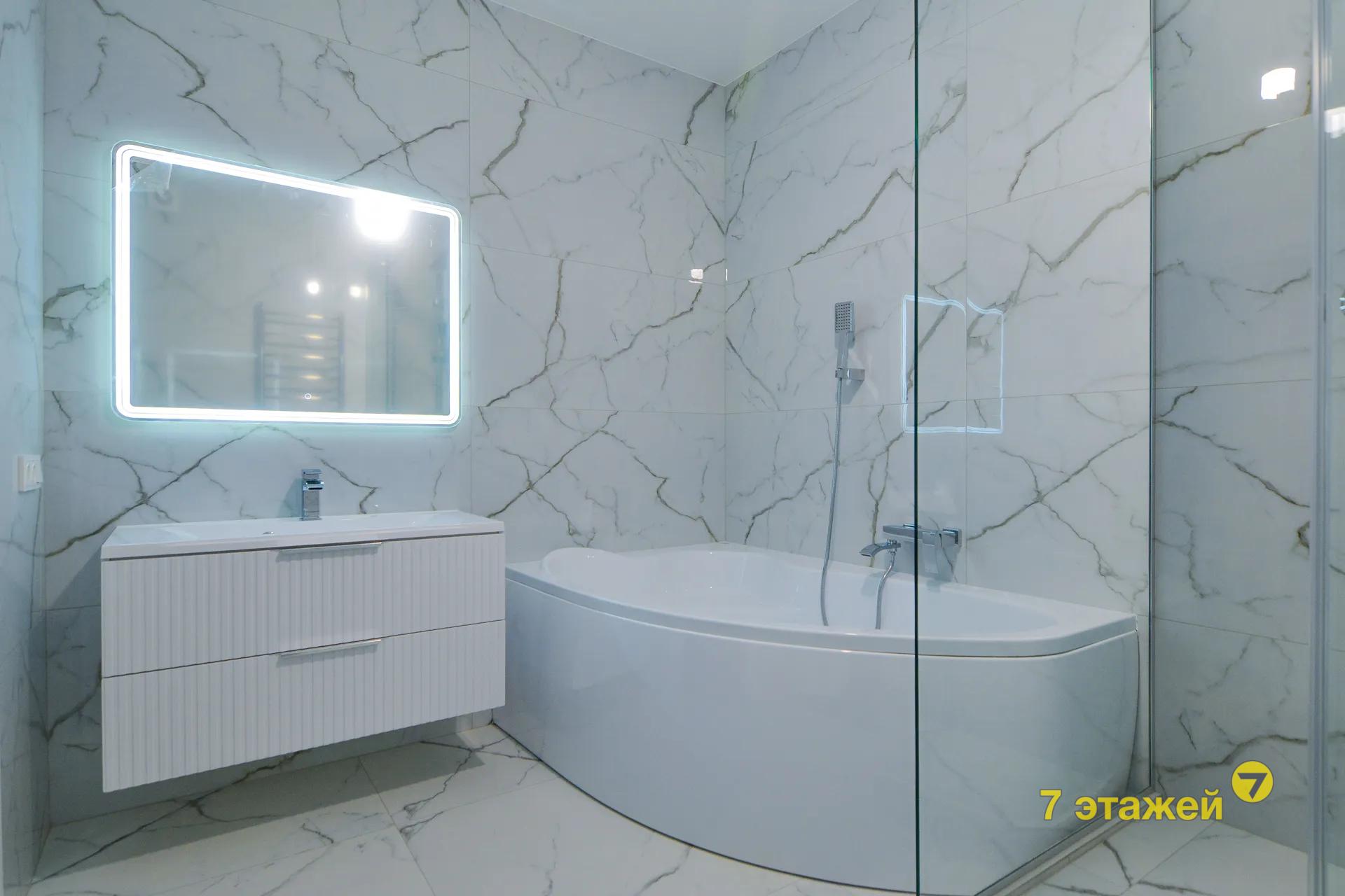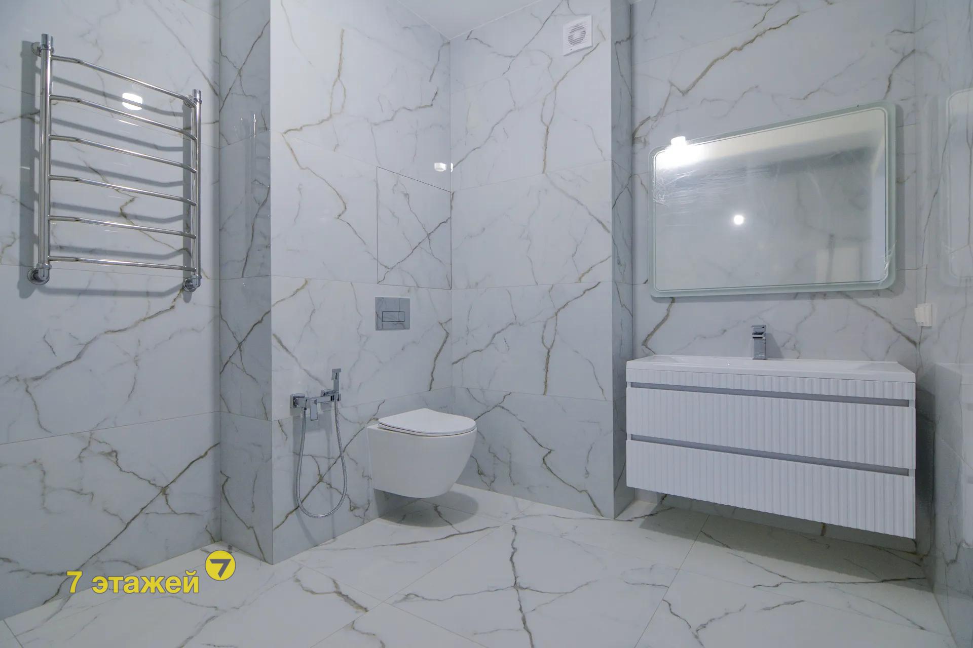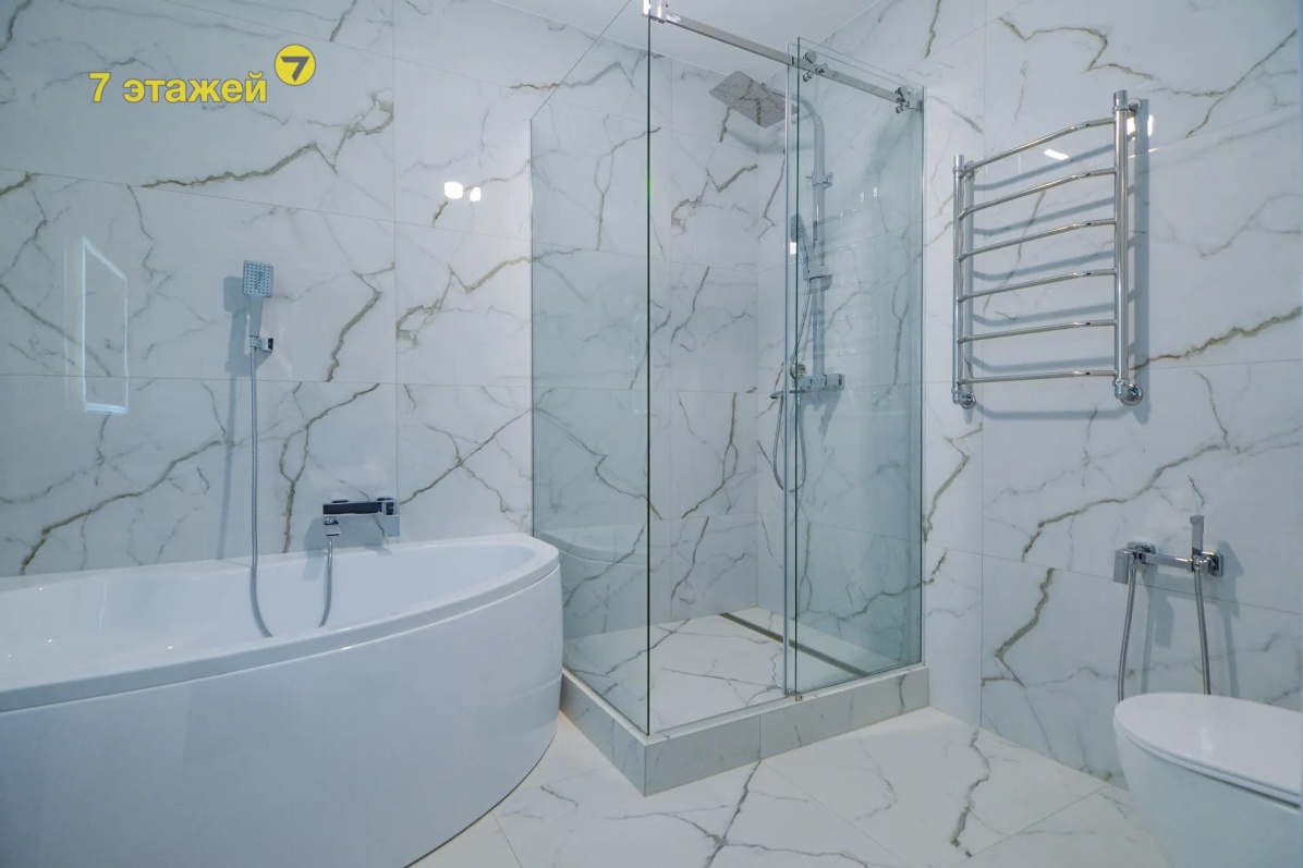 - Два санузла с современной сантехникой и отделкой под мрамор. Высота потолков — 2,76 м