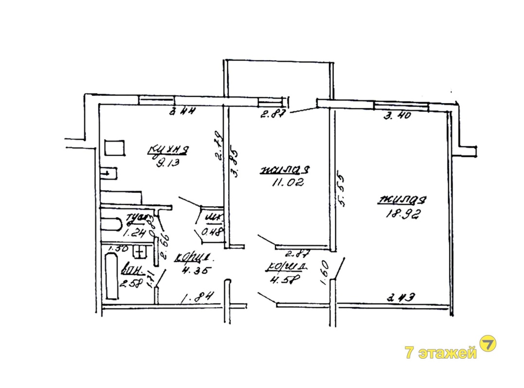 Площадь 52.3/29.94/9.13, застекленный балкон