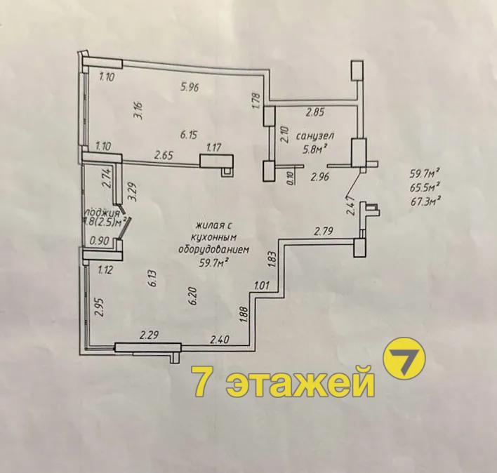 Площадь квартиры по СНБ 67.3 кв.м, общая 65.5 кв.м.