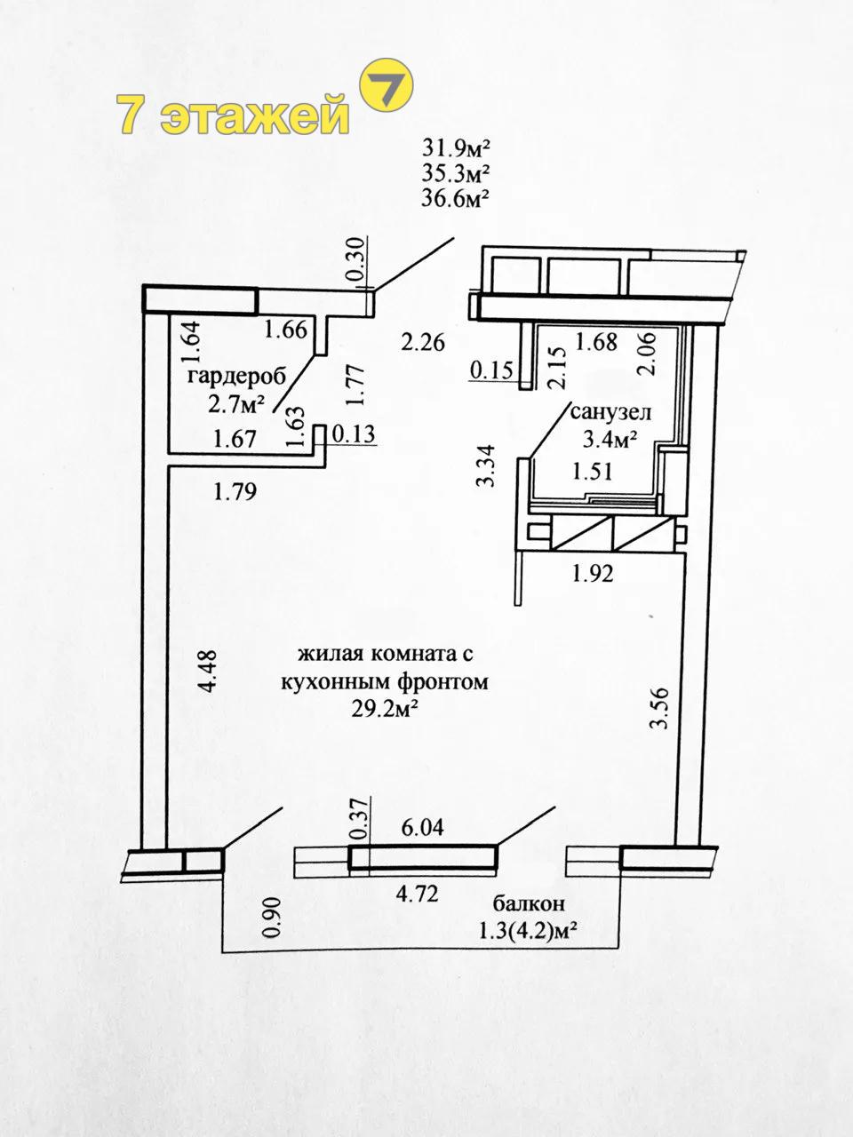 - площадь по СНБ 36.6 м2, что позволяет комфортно разделить спальную зону и обеденную зону