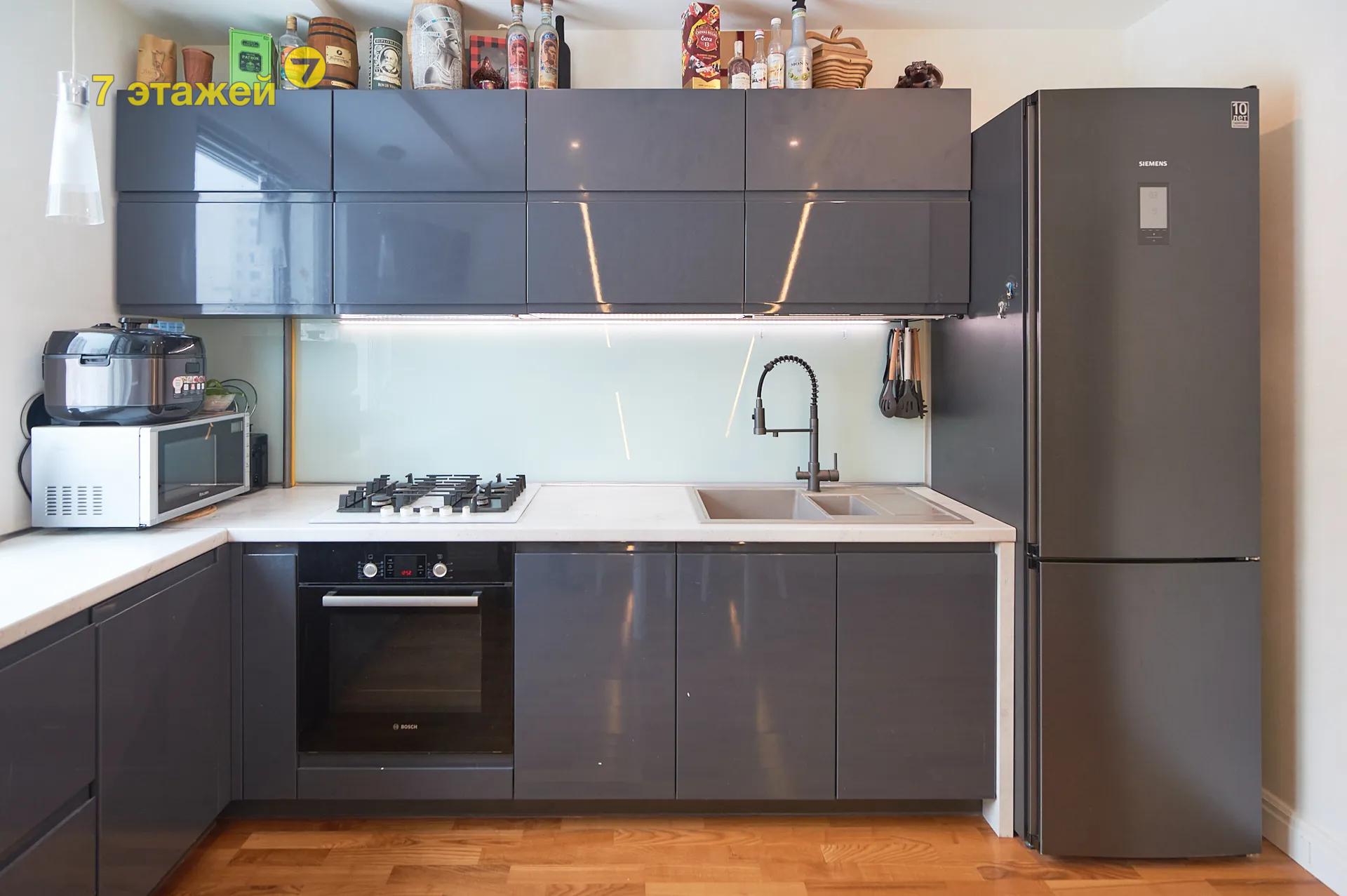 - встроенная функциональная кухня с удобными системами хранения и рабочими поверхностями, оснащенная доводчиками BLUM,