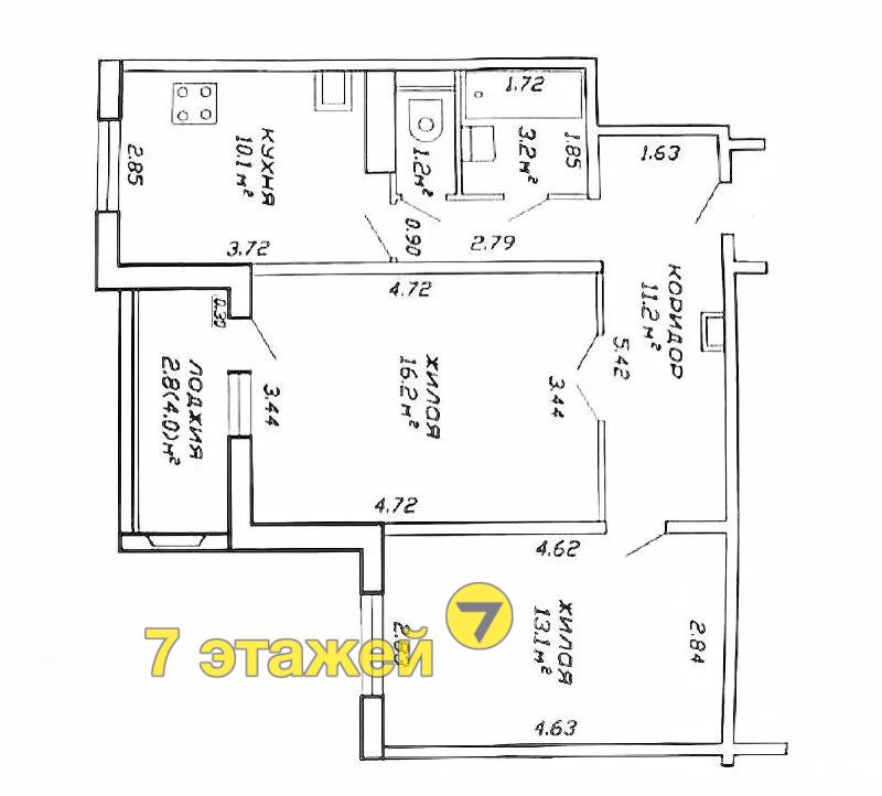 - 2 раздельные жилые комнаты (16.2 и 13.1 м2),