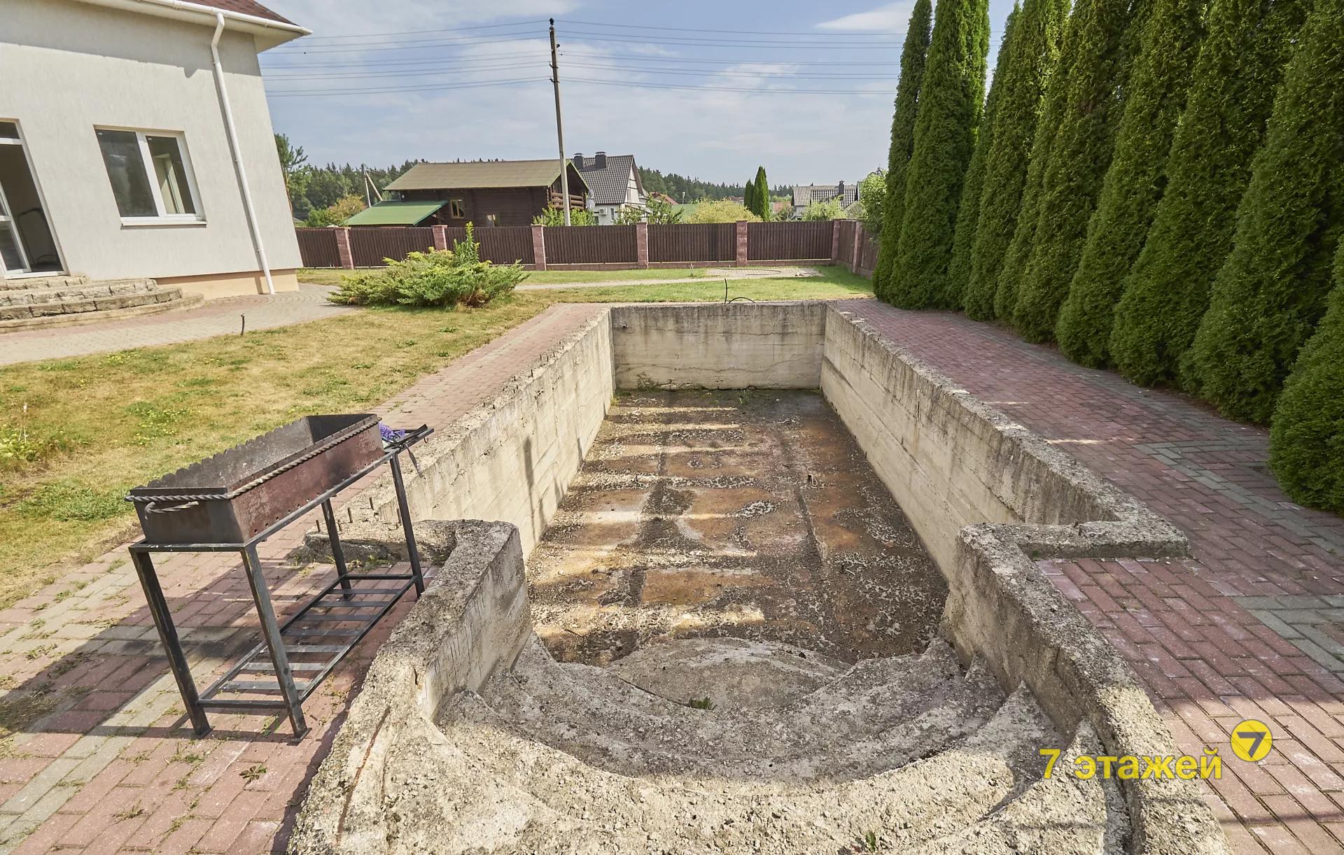 Бетонный бассейн на участке без отделки, но с подведенным освещением и канализацией.