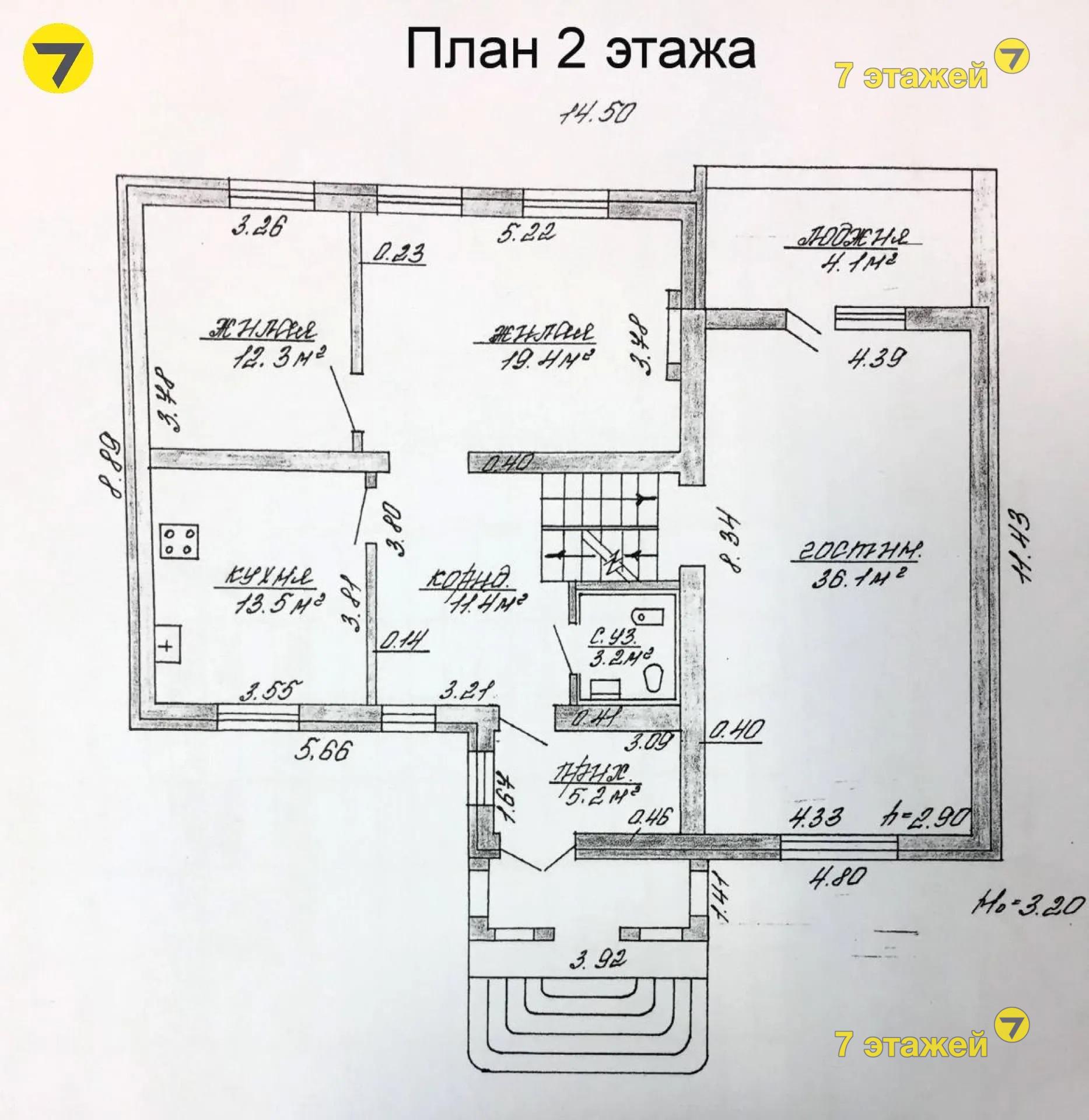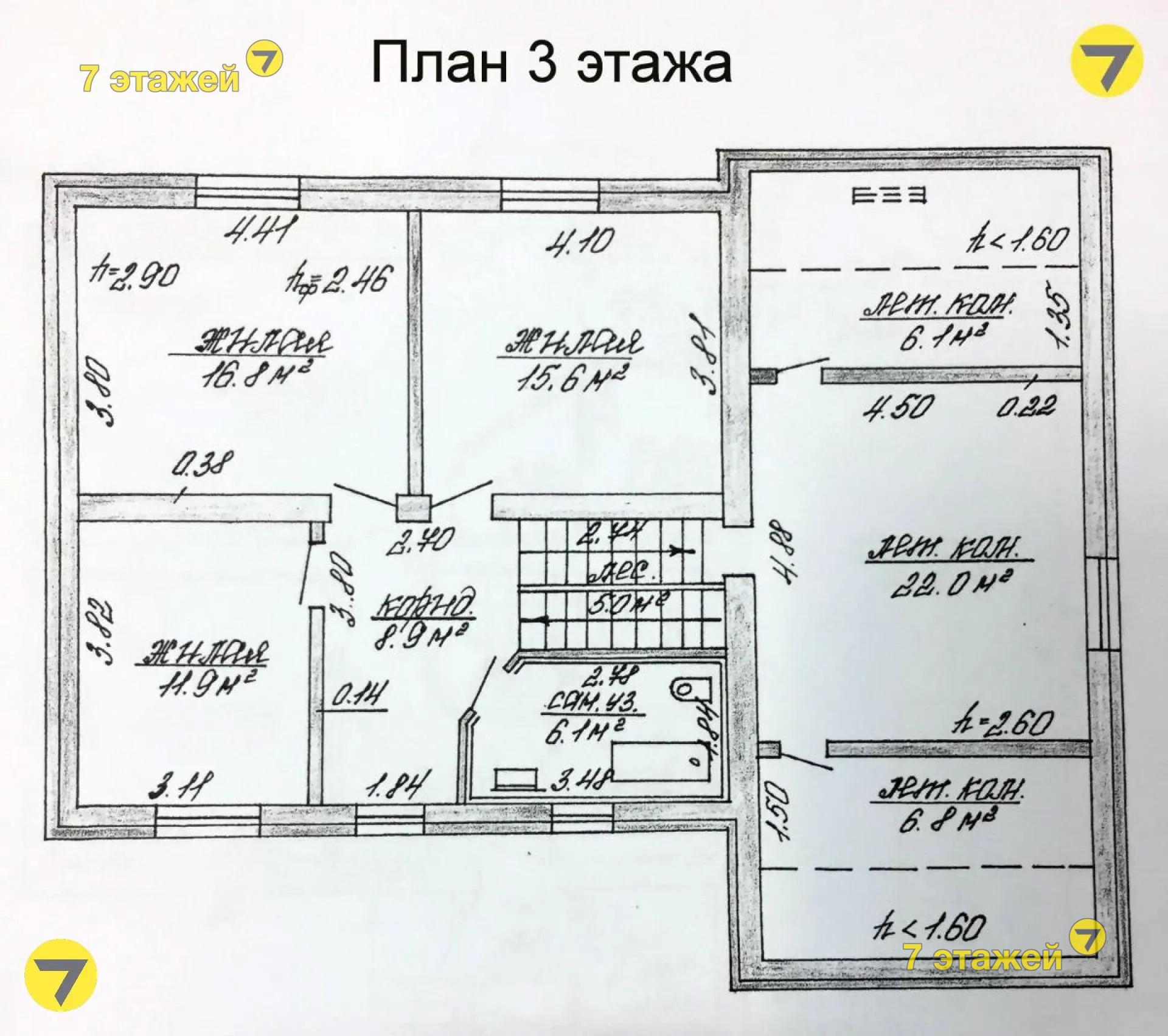 Просторный - 7 комнат, 2 санузла, большая открытая лоджия, есть камин;