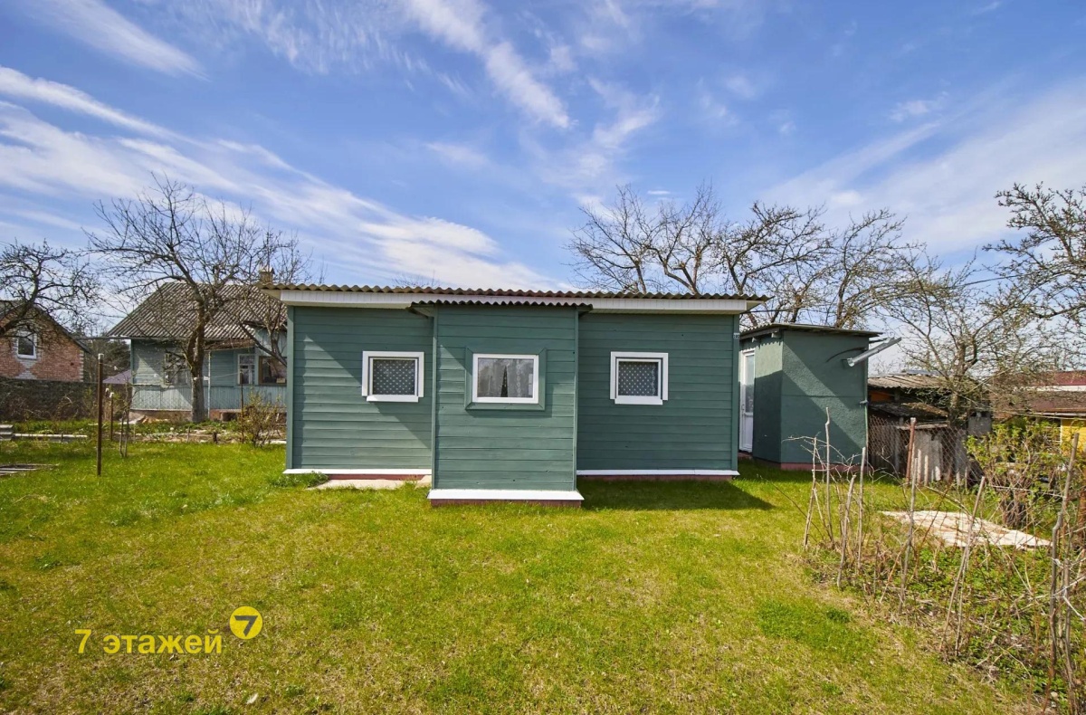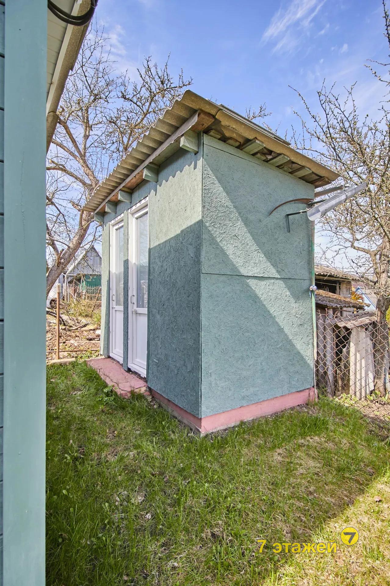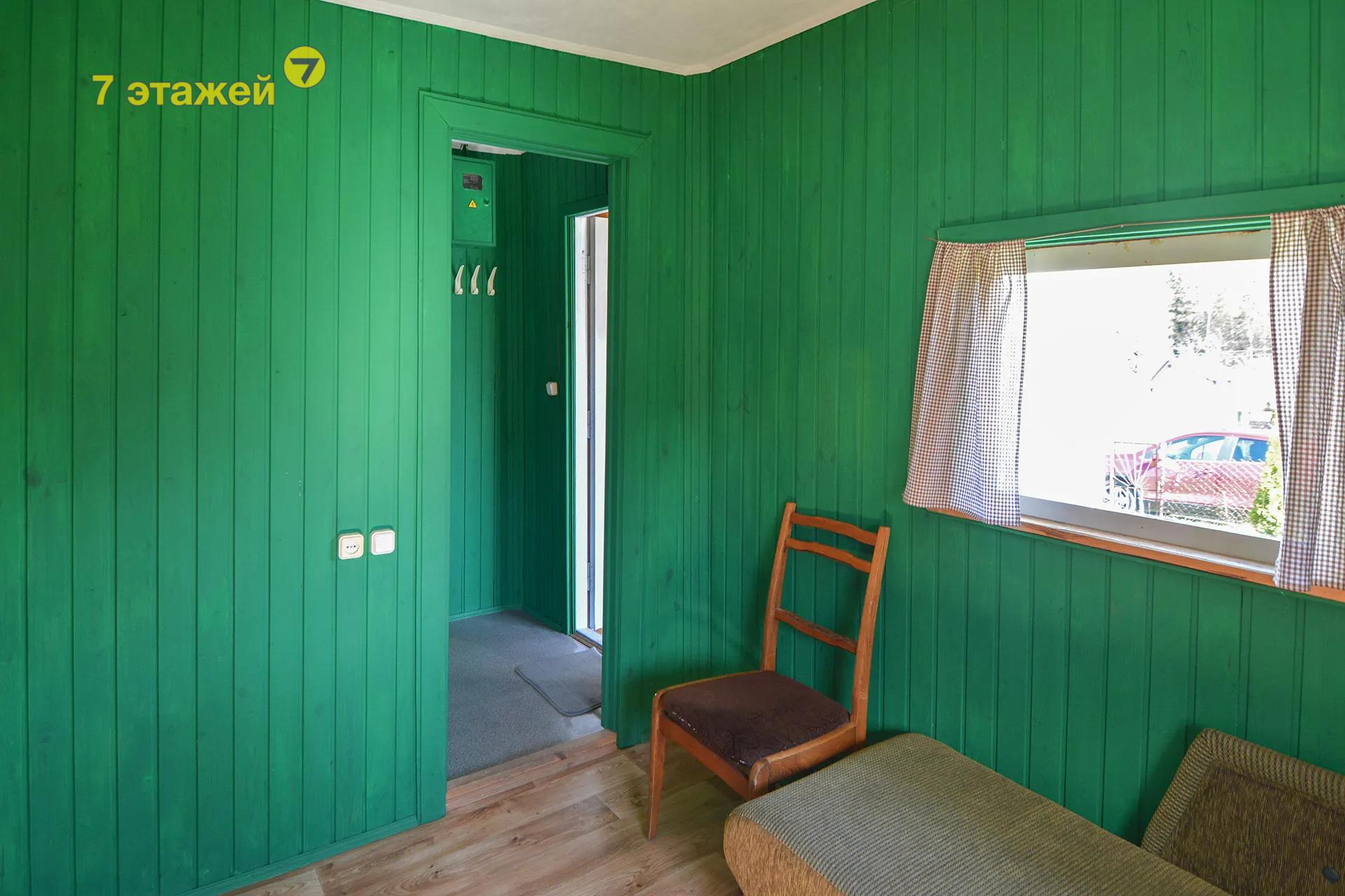 Дощатый садовый домик с окнами ПВХ, включающий в себя 2-е комнаты, коридор и прихожую;