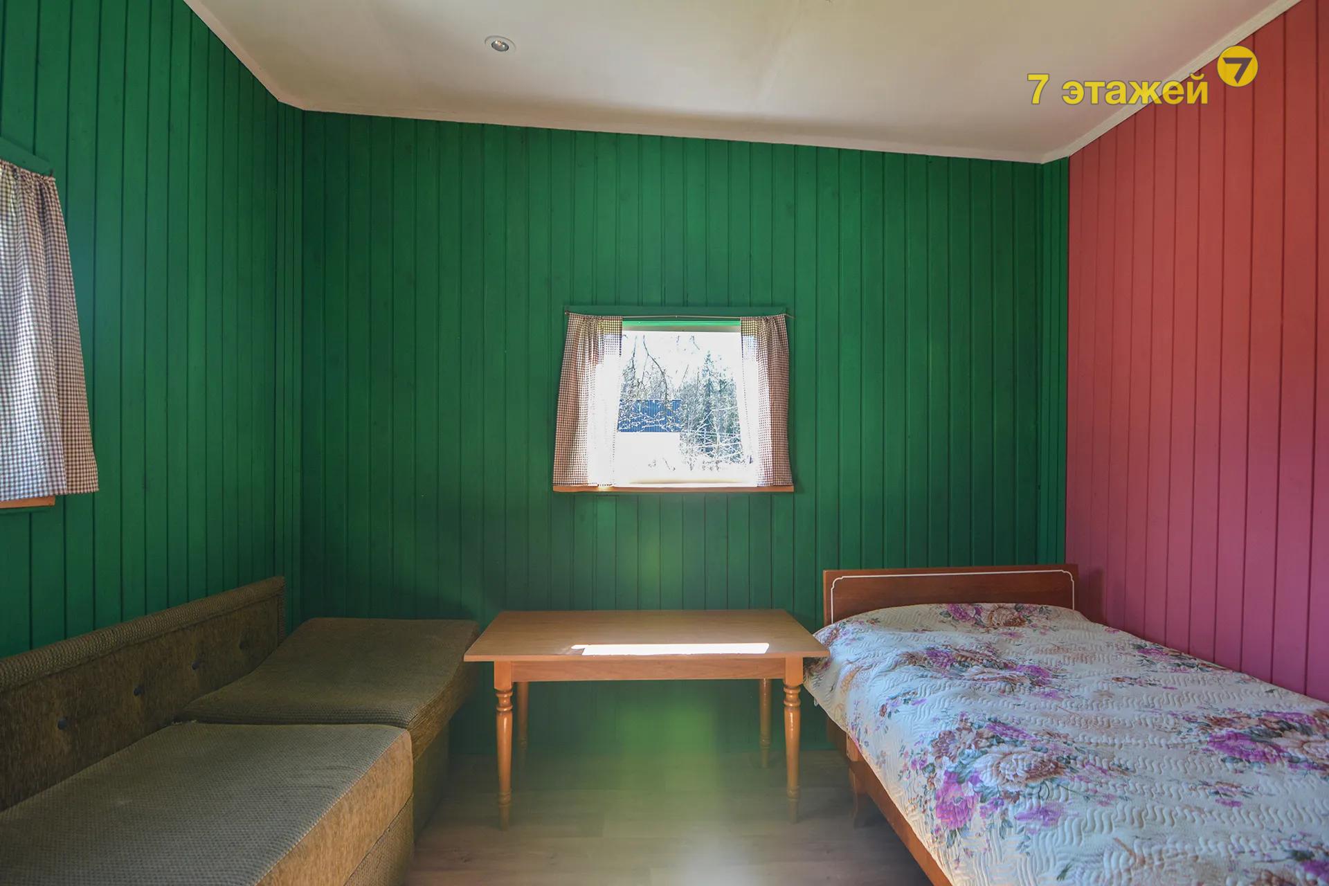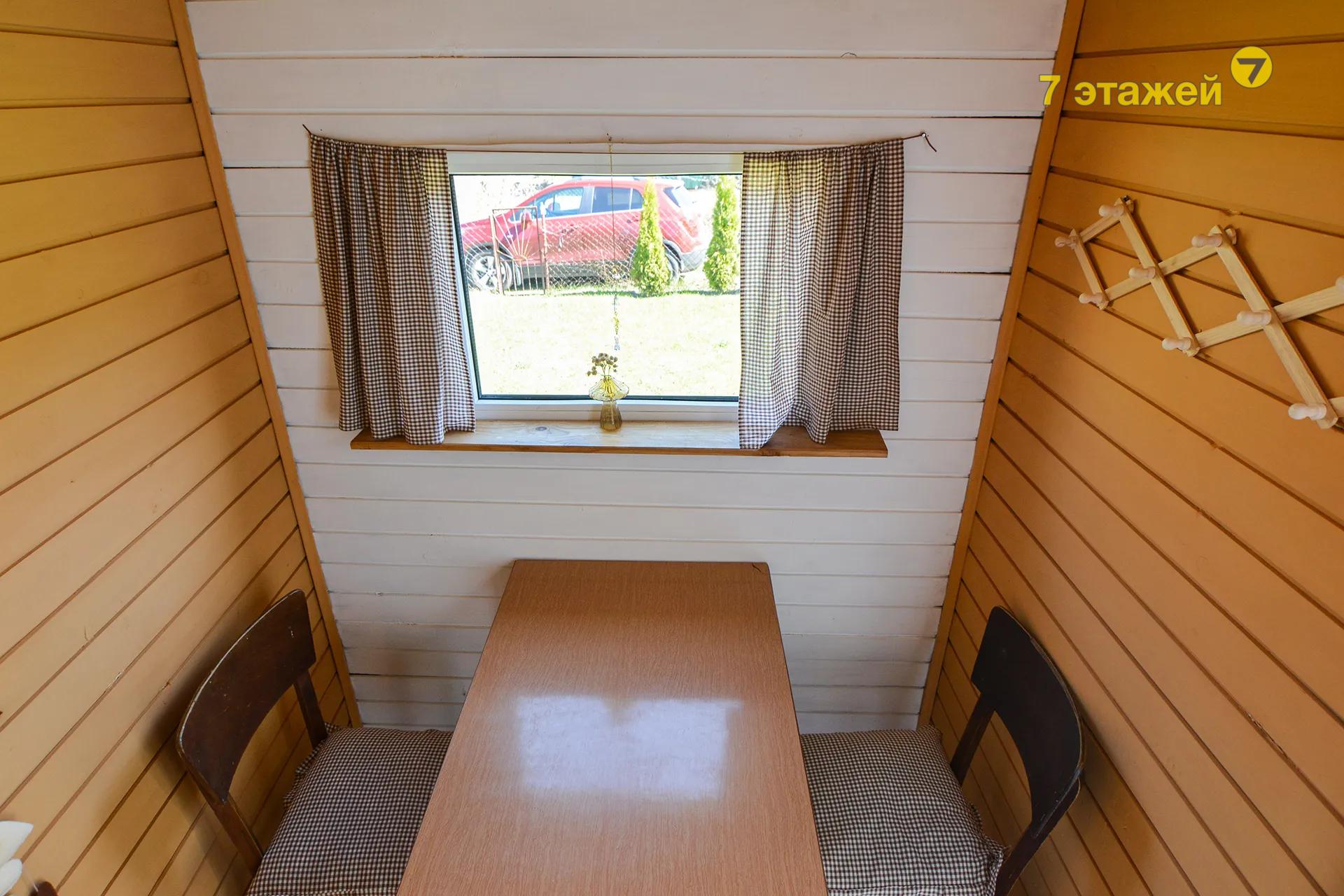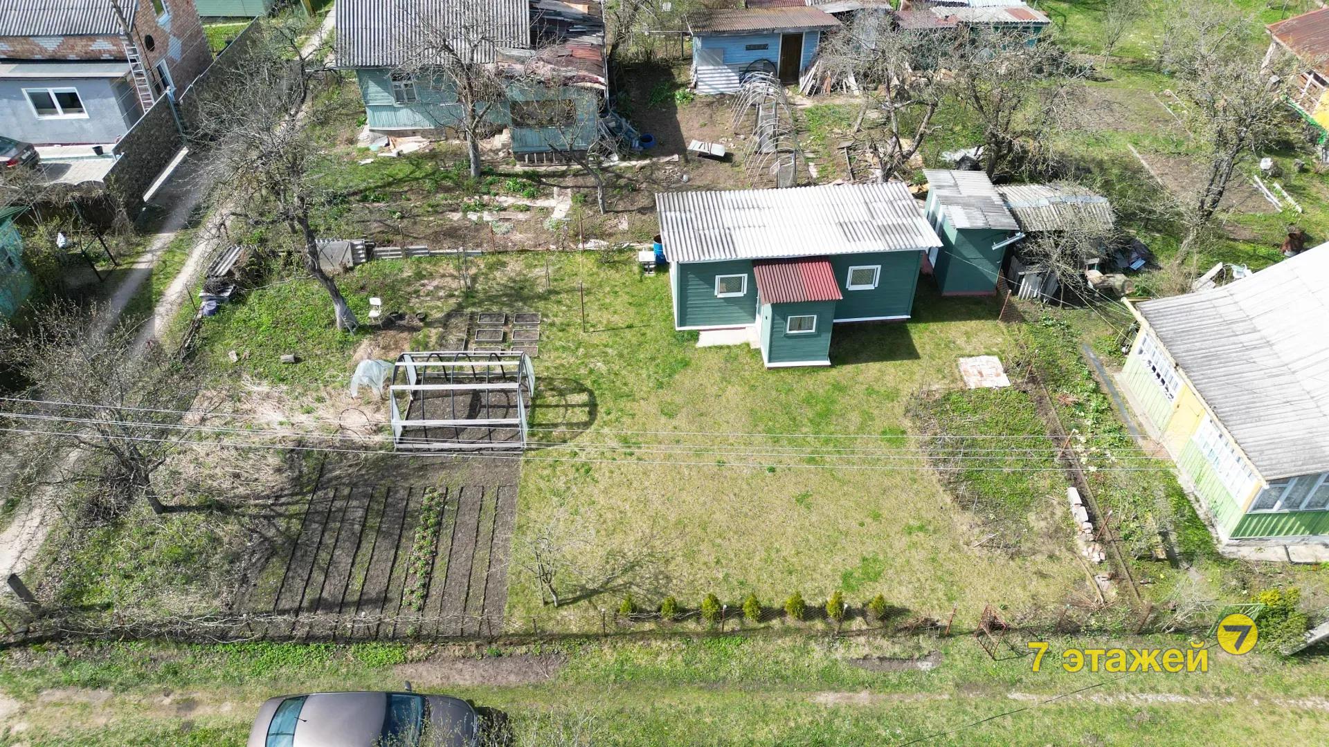 Дощатый садовый домик с окнами ПВХ, включающий в себя 2-е комнаты, коридор и прихожую;