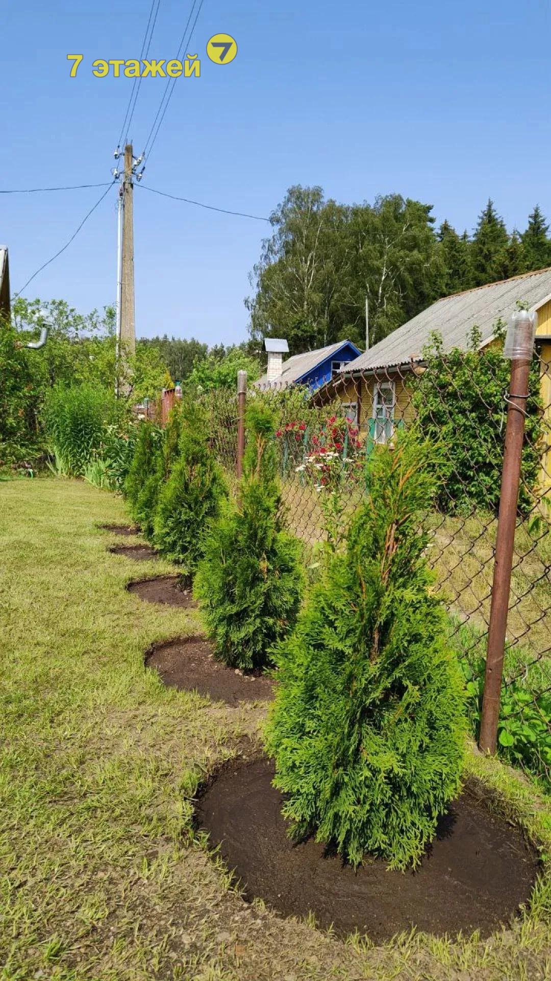 Участок 3,66 сотки на котором много плодовых и декоративных деревьев, кустарников, туи, газон, парник, грядки;