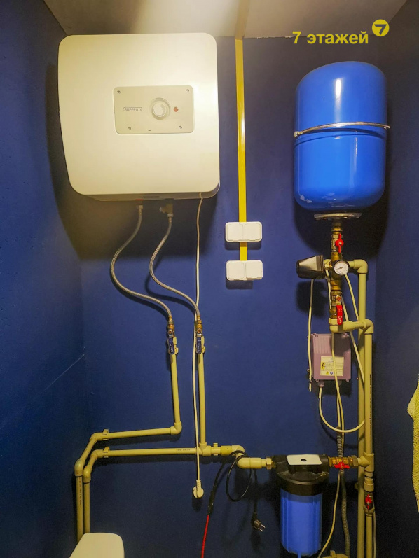 • Горячая вода от бойлера, сделаны выводы под небольшую ванну.